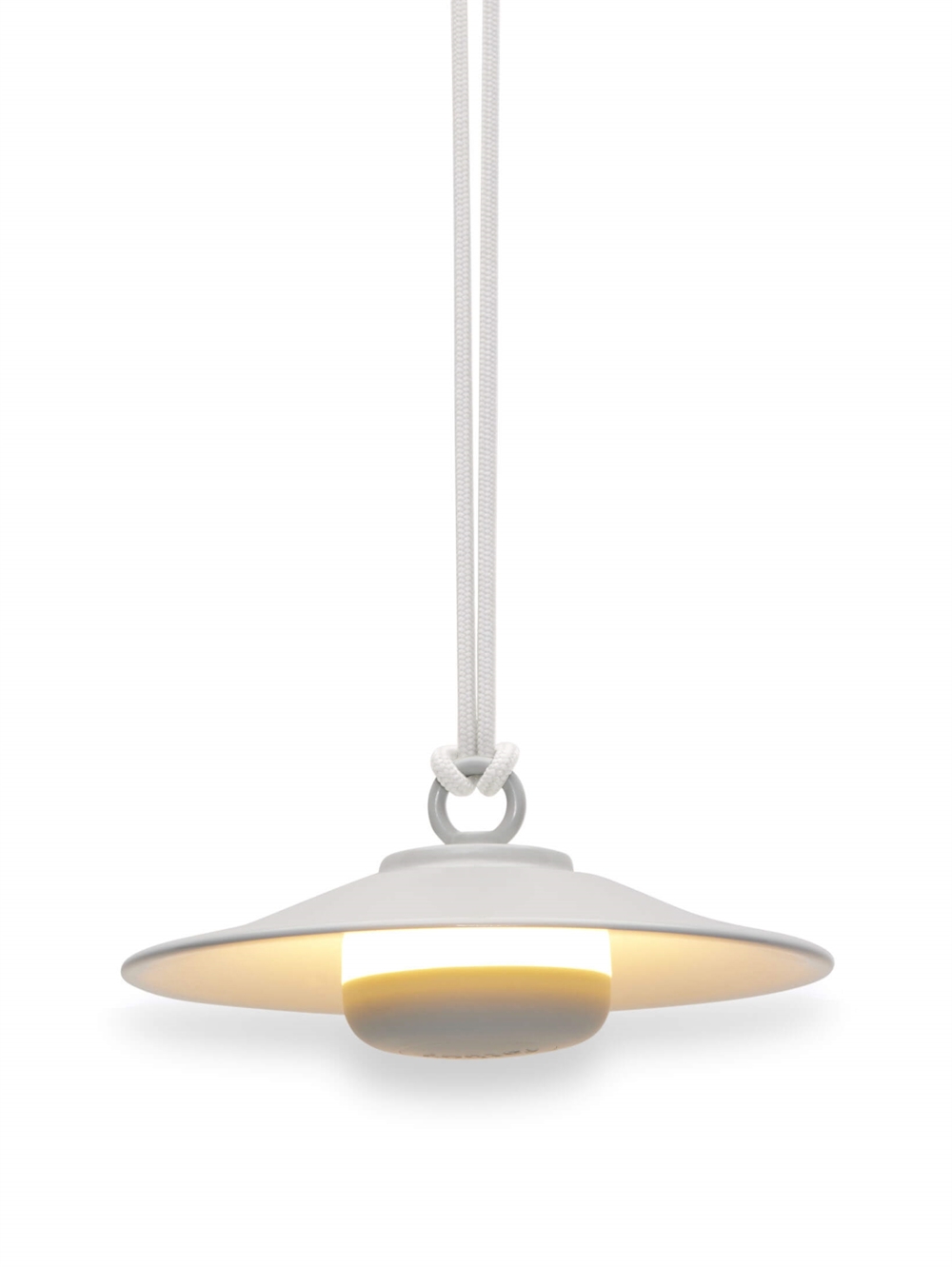 Chap-O er en lille pendel med et ikonisk, kompakt design og et varmt LED-lys. Batteriet i lampen gør ledninger overflødige og pendlen er derfor oplagt både udendørs i haven eller indendørs i stuen, køkkenet, entreen eller måske i soveværelset. Der medfølger et beslag, så du kan fastgøre lampen til en væg eller et hegn, men den kan også hænge frit ned fra loftet eller fra en gren på et træ i haven.