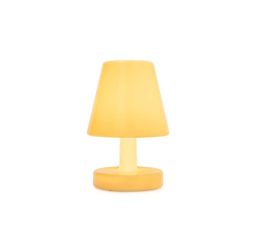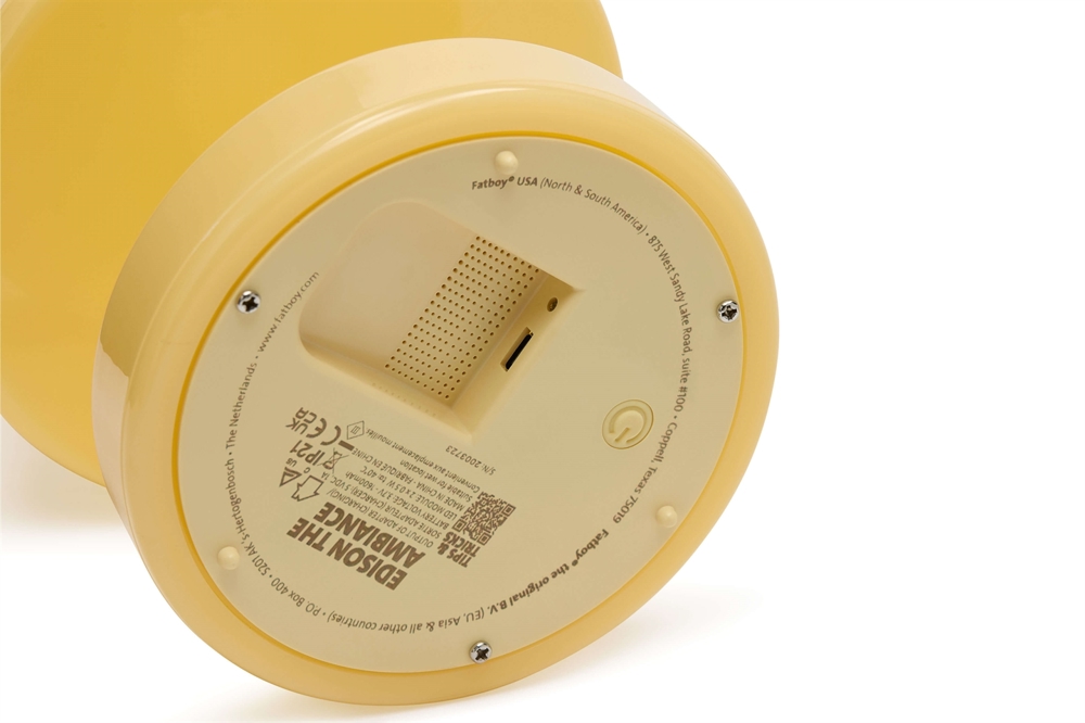 Fatboy Edison the Ambiance er en robust transportabel bordlampe med runde former, en iøjnefaldende gul pastelfarve og