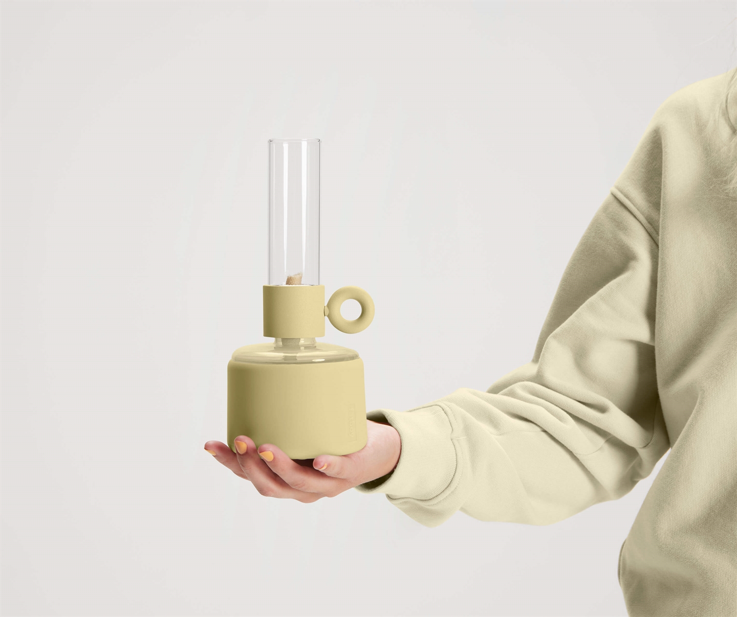 Flamtastique XS i denne blege gule farve er en lækker olielampe til indendørs brug. Lampen er inspireret af en traditionel olielampe og består af et slankt glasrør til afskærmning af flammen og en fod, der fungerer som oliebeholder. Den gennemsigtige del af foden gør, at du altid kan se, hvor meget lampeolie der er tilbage. Vægen drejes frem via håndtaget på siden af lampen.