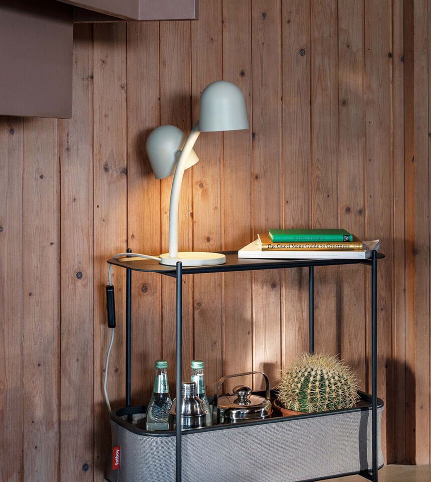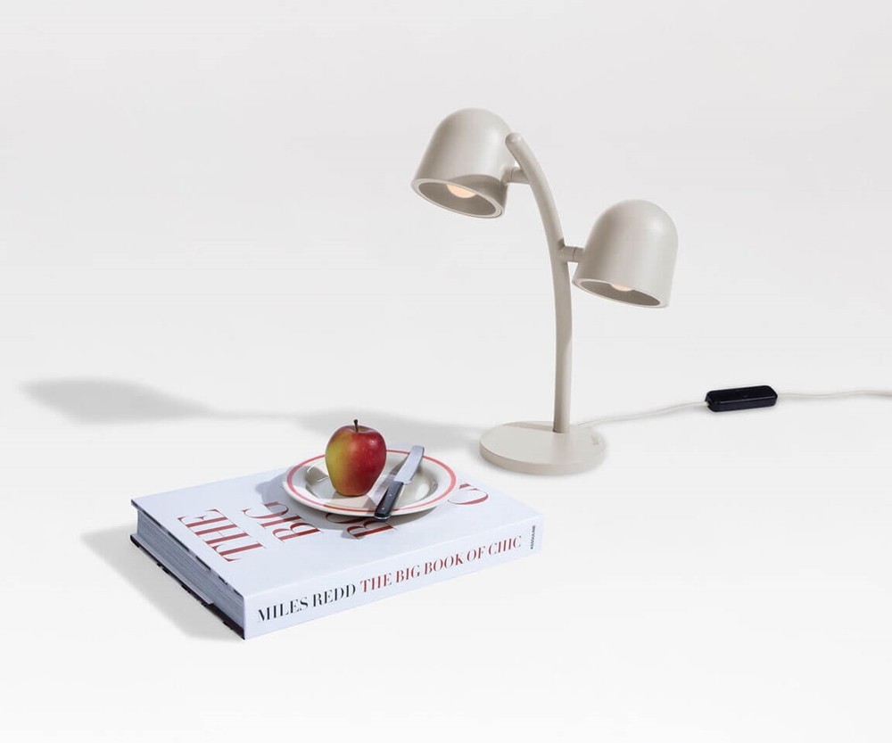 Bordlampen Little Lebow i denne lyse nuance kombinerer legende design med smarte funktioner. Lampen kan benyttes i ethvert rum og gør sig godt på skrivebordet, i et læsehjørne i stuen eller på natbordet. Little Lebow er fremstillet i stål og støbt aluminium, som er pulverlakeret. Den har to drejelige lampeskærme og er dæmpbar, så lysets styrke og retning kan tilpasses til situationen. Seneste valgte lysstyrke huskes, når lampen tændes igen.
