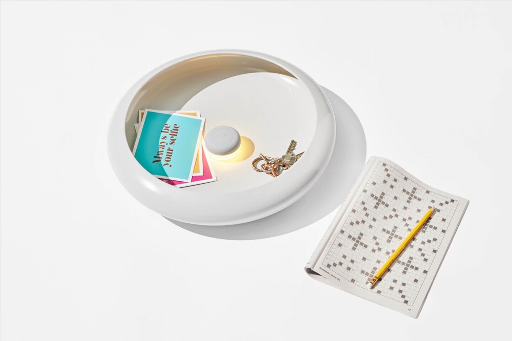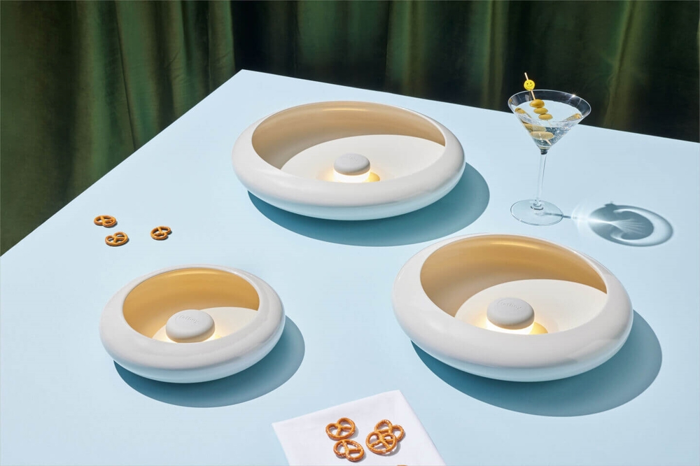 Batterilampen består af en skærm af coatet metal og en magnetisk lampe i silikone. Lyset kan trinvist dæmpes, hvis man blidt trykker på ringen i midten. På fuld styrke lyser den op til 8 timer og på laveste styrke i op til 90 timer. Lampen giver et varmt lys, men det er farven på lampen, som påvirker stemningen af det lys, som udsendes.