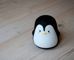 Pingvinen er en LED-lampe formet i silikone for 'soft touch'.