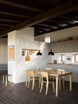 Denne pendel med karakteristiske geometriske former og et minimalistisk udtryk blev oprindeligt skabt i 1963 af den dansk arkitekt og møbeldesigner Finn Juhl og er genintroduceret af Louis Poulsen i 2025.