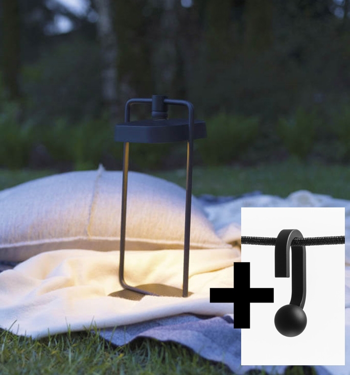 Flai sæt, lille 1 - består af lanterne bordlampe (krop og lampe) + krog, sort