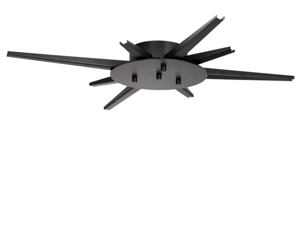 Alle ledninger samles let og fordeles til de mange arme. Ledninger fastgøres derefter af lampens vægt i slids i enden af hver arm.