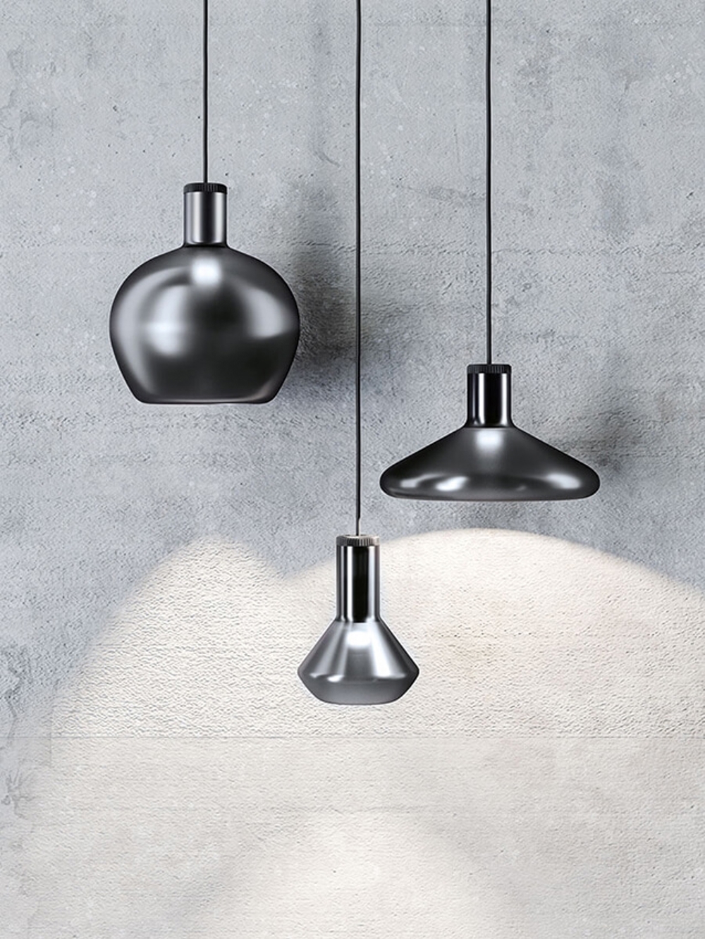 Flask pendlen er inspireret af de unikke former på glas fra laboratorier. Pendlen har en metallisk overflade, men når lampen er tændt, kan man fornemme glassets natur. Det giver en enestående effekt i rummet.