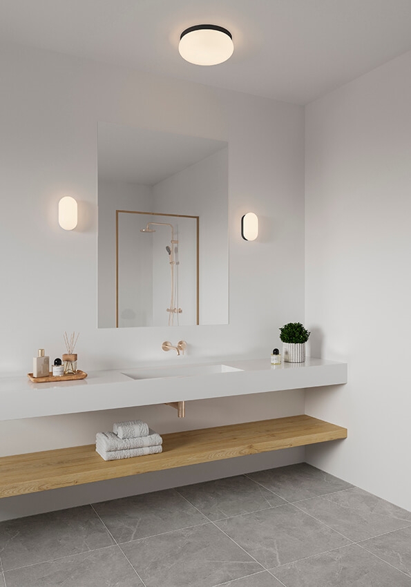 loftlampen findes i sort og hvid, og er essentiel at benytte på badeværelset, grundet lampens IP-klassificering på IP44. Samtidig er det muligt, at connecte parallelt.