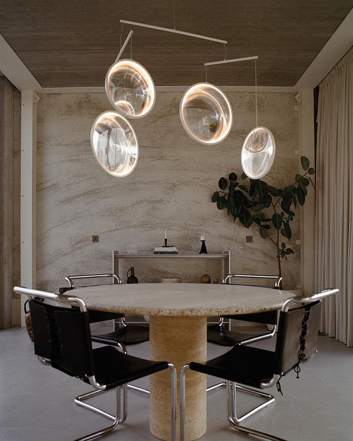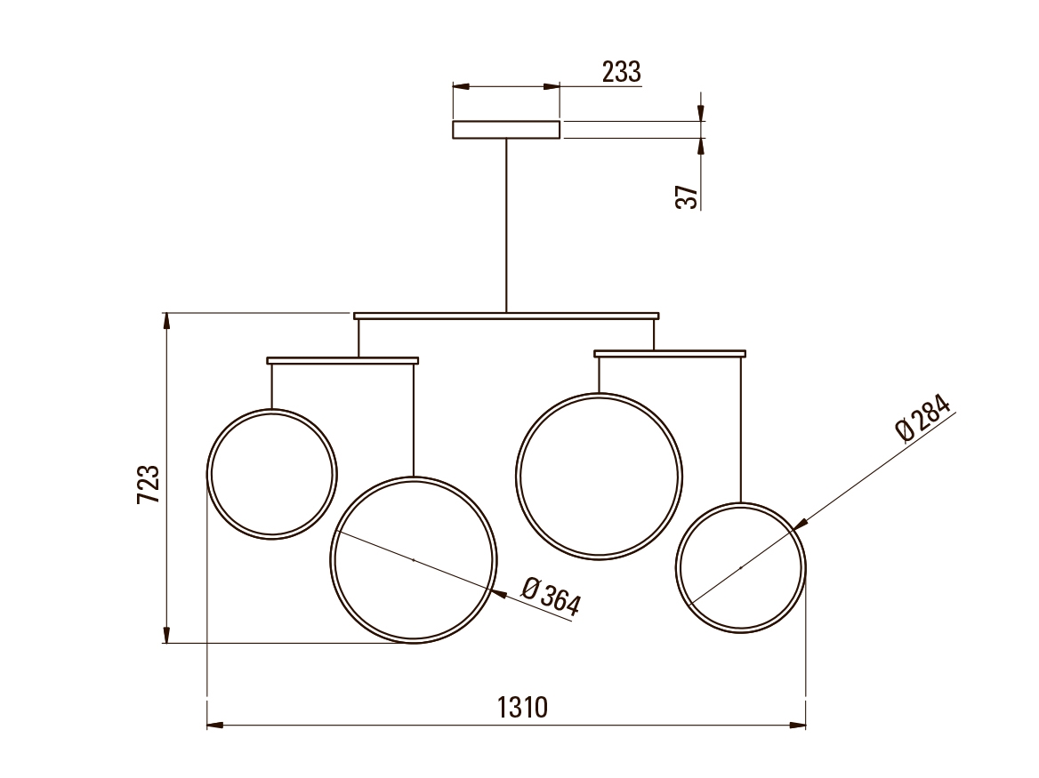 Denne meget elegante pendel er sammensat af 4 lysende skiver lavet af akrylglas. Glasset giver en helt unik effekt og sammen med pendlens geometriske udformning også blikfang til rummet.
