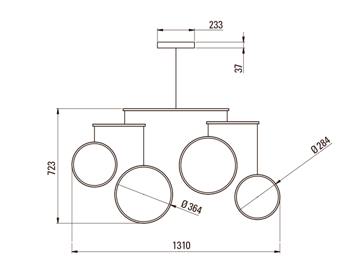 Mål: H72,3 cm x B131 cm, skærme: Ø28,4 cm, Ø36,4 cm