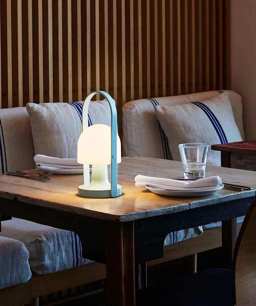 Marset FollowMe batterilampe bordlampe i blå designet af Inma Bermúdez.