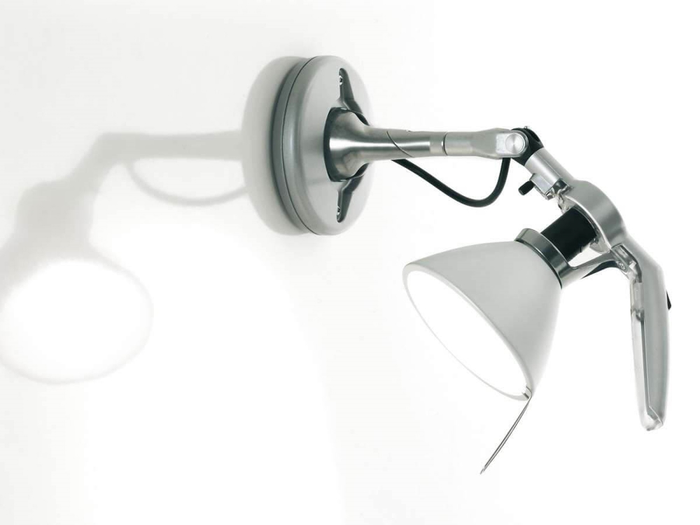 Denne version af Fortebraccio kan anvendes som væglampe eller loftlampe. Tænd/sluk-knappen er anbragt på det karakteristiske og praktiske greb over skærmen, der gør det muligt at justere lysretningen enkelt og præcist.
