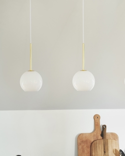 Franca-serien har et eksklusivt og elegant design udført i smukt blankt glas og skinnende messing. Den hvide glaskuppel skaber et blødt og diffust lys. Pendlen er smuk alene men er også flot i kombination med andre Franca pendler for et mere fyldigt udtryk.