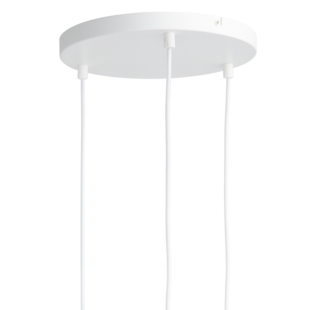 Baldakin i mat hvid til 3 pendler, der kan hænge i en flot klynge.