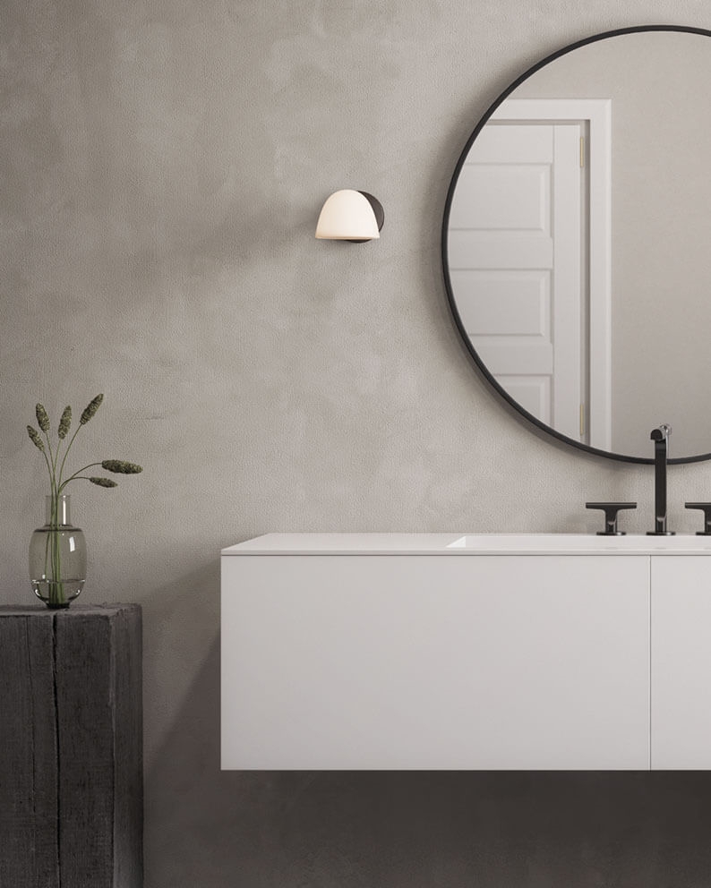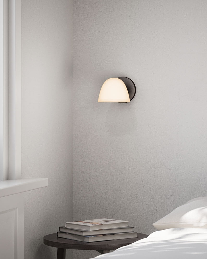 Væglampen Fuse Single har et klassisk design skabt i holdbare materialer som trelags opalglas, alabast og bruneret messing. Den medfølgende udskiftelige lyskilde er placeret bag et gennemskinneligt låg af alabast, der sammen med skærmen i trelags opalglas sikrer en blød og blændfri belysning.