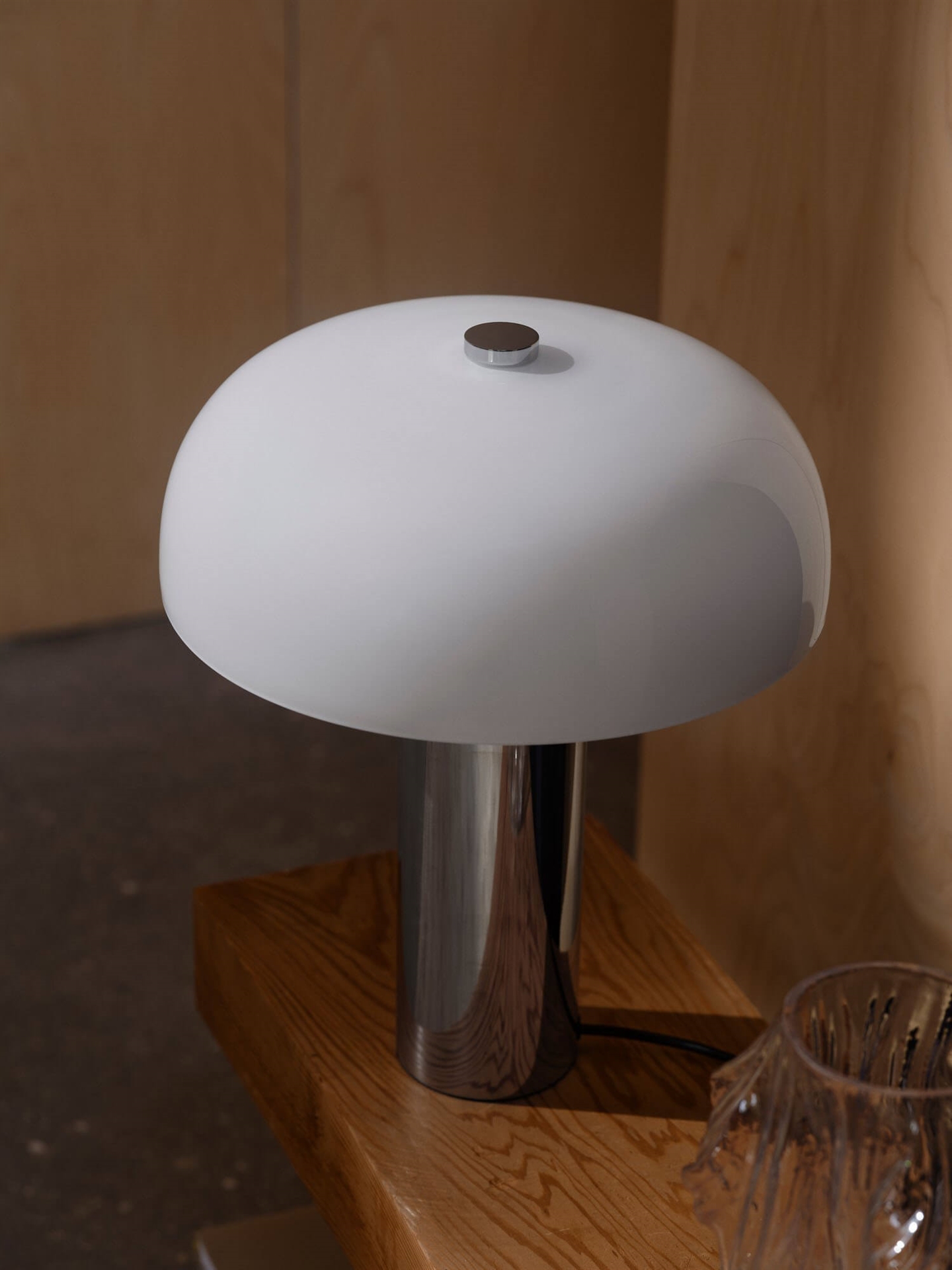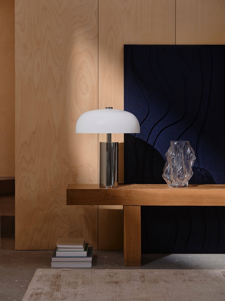 Bordlampen har et skulpturelt og sofistikeret udtryk og er ideel som belysning i både stue, soveværelse og entré.