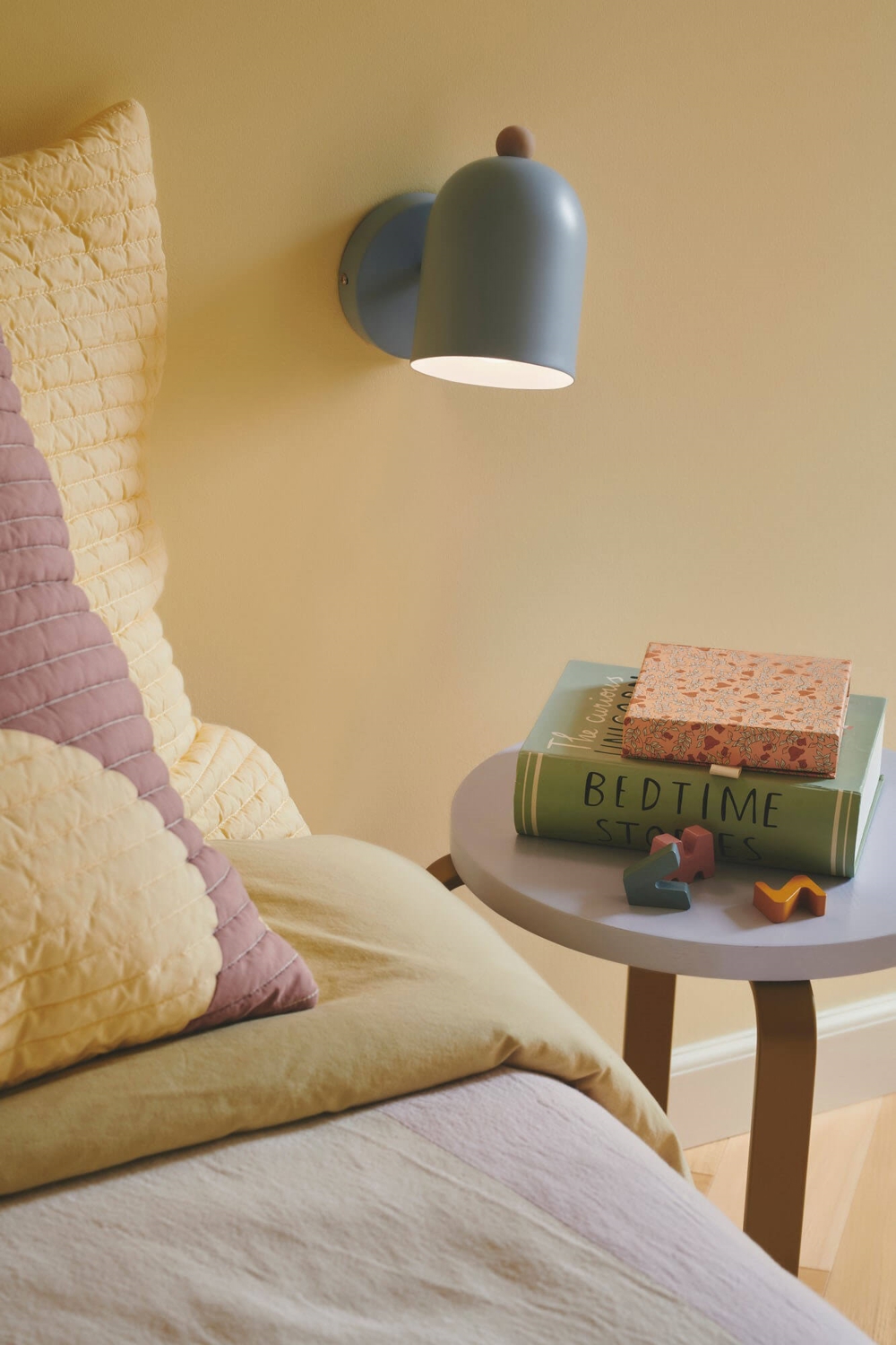 Væglampen Gaston er en alsidig lampe med et nordisk design, som kombinerer enkelhed, funktionalitet og charme. Den afrundede skærm i metal er tilføjet en smuk trædetalje på toppen - et subtilt designtræk, som løfter væglampen visuelt med et naturlig organisk element.