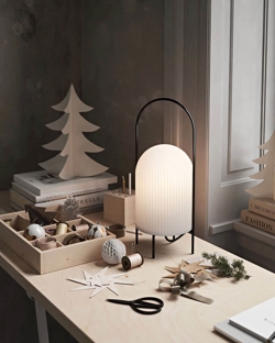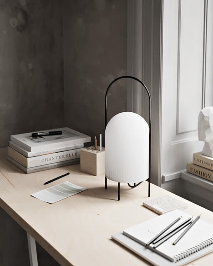 Woud Ghost bordlampe, opal/sort – designet af Studio Kowalewski