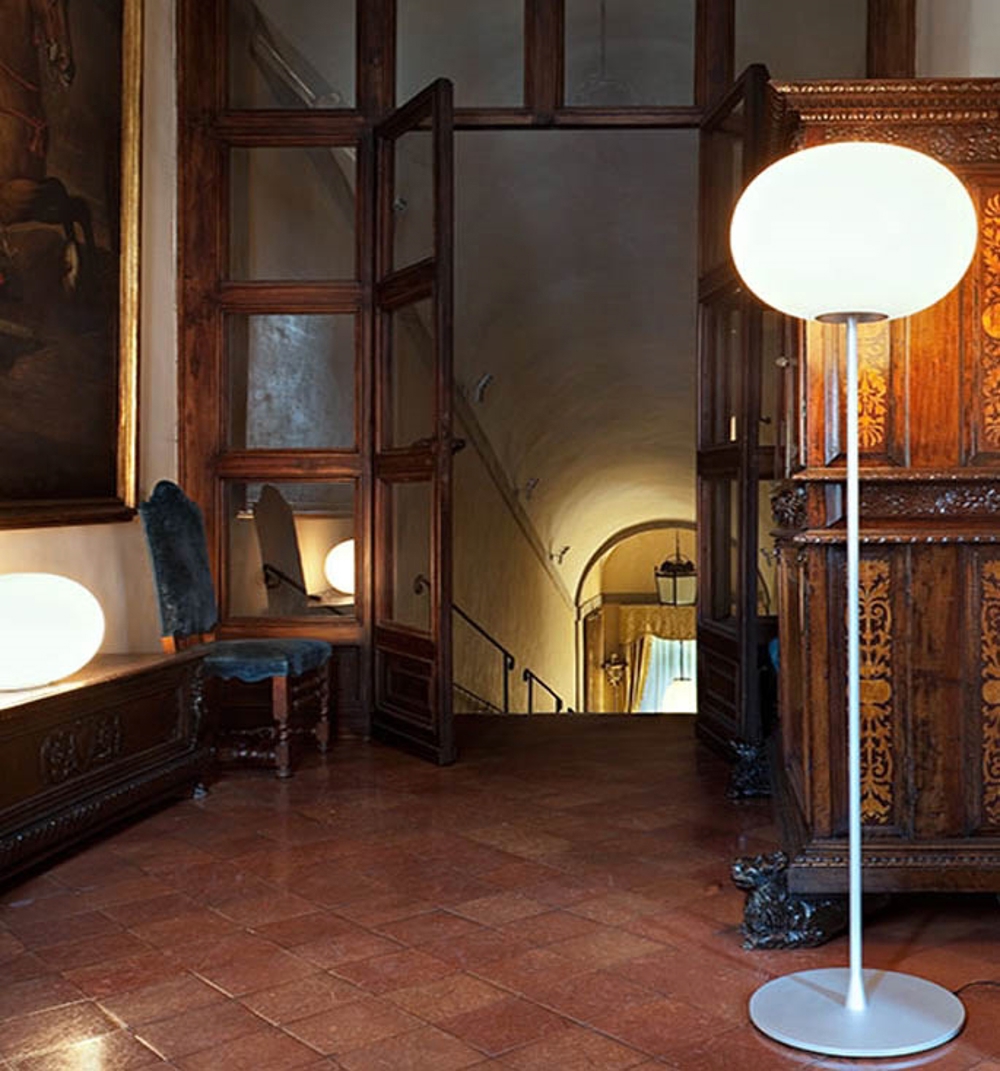 Flos Glo-ball F3 gulvlampe, sølv - designet af Jasper Morrison.