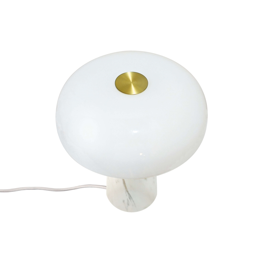 Glossy Mini er en elegant bordlampe med en smuk marmorbase og top i børstet messing. Lampen er designet af den danske designer Maria Berntsen, som har ønsket at skabe et minimalistisk nordisk design med brug af gode materialer, som gør hver lampe unik.