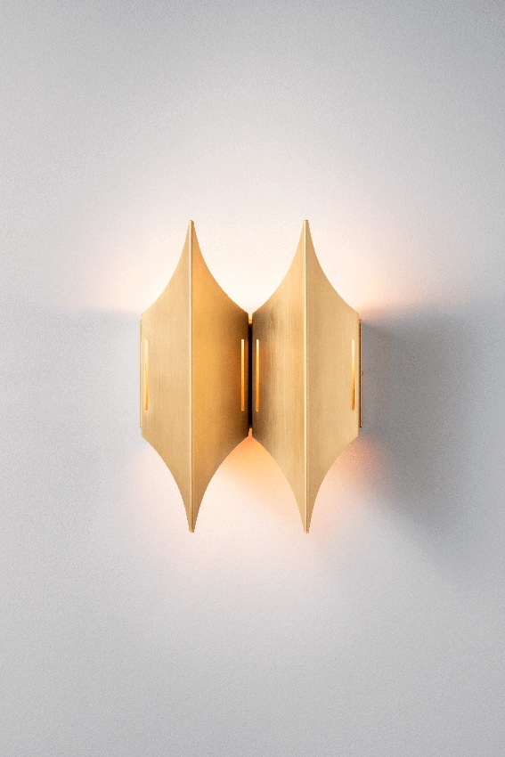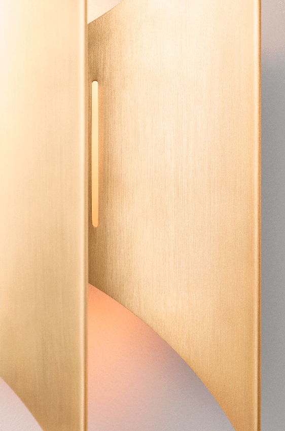 Gothic væglampen er fuld af karakter, og har med sine to aflange lampeskærme med spidsbuer en dekorativ aftoning på væggen. væglampen består af et messingarmatur, som udsender en blød opadgående belysning, der efterlader et smukt mønster på væggen, grundet de små huller der er i overfladen på skærmen. På væggen kommer små organiske og bølgede former.