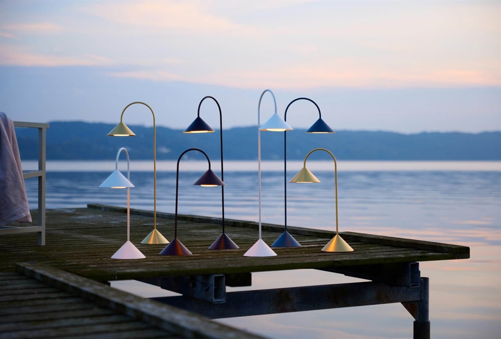 Grasp-serien består af genopladelige lamper med flere forskellige finish. Der er havelamper med spyd og væglamper samt bord-/gulvlamperne Grasp Portable i to størrelser i serien.