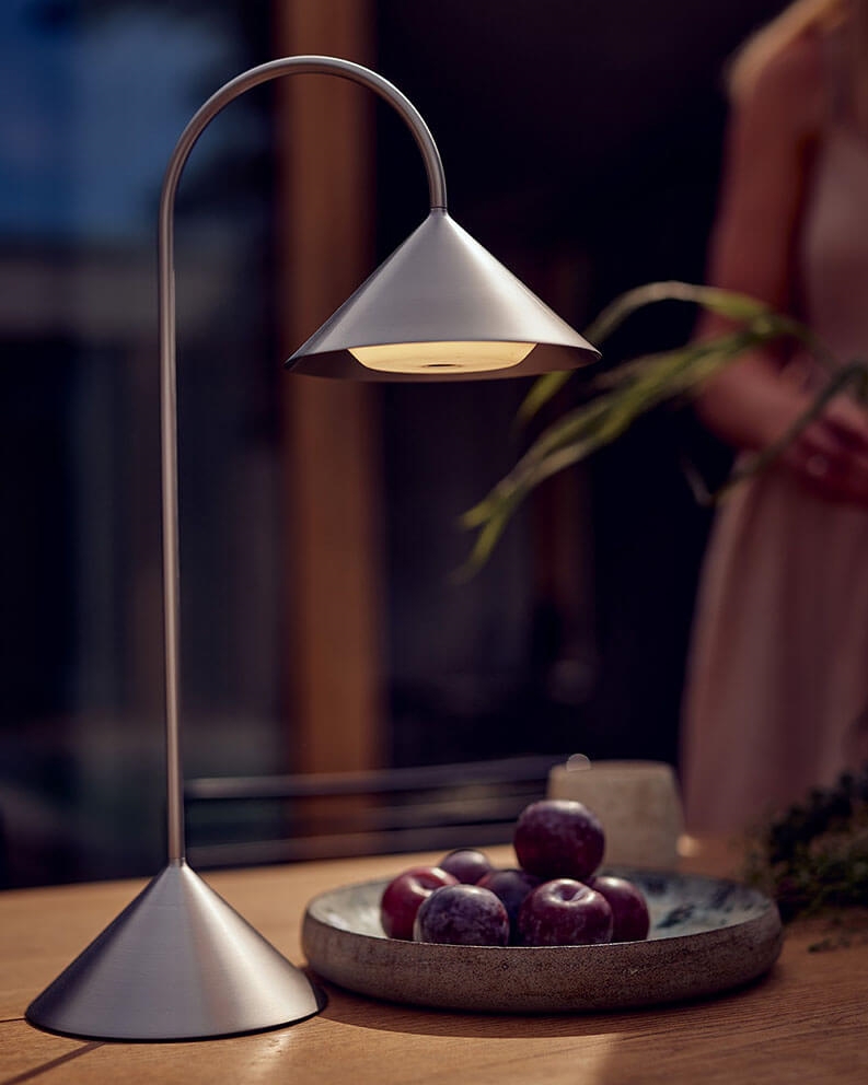 Den medfølgende genopladelige Frandsen One lyskilde er magnetisk og kan med en touch-funktion dæmpes i tre trin på henholdsvis 150 lumen, 75 lumen og 30 lumen, så lyset passer til den ønskede stemning. Med LED-lyskilden på fuld styrke lyser den trådløse lampe 12 timer før den skal oplades igen med det medfølgende opladningskabel. Køb eventuelt særskilt en ekstra Frandsen One lyskilde, så der kan sikres fortsat lys, når det er tid til genopladning.