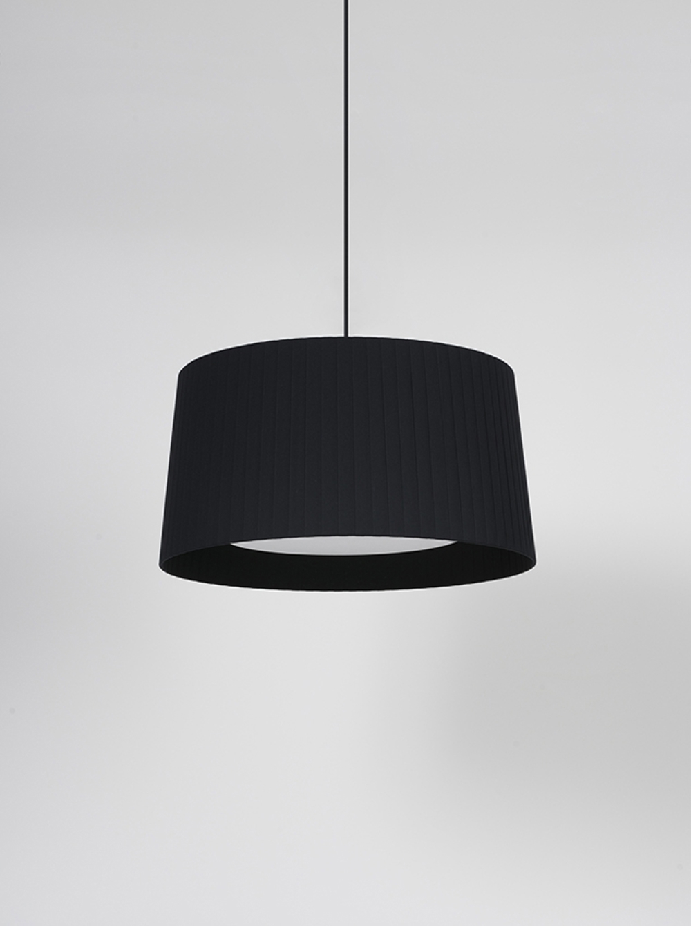 GT5 pendlens skærm er lavet af bogbinderstof, og den er betrukket med bånd af pergamentstof. Denne konstruktion giver en varieret belysning, og når lampen ikke er tændt, fungerer den samtidig som et dekorativt element.