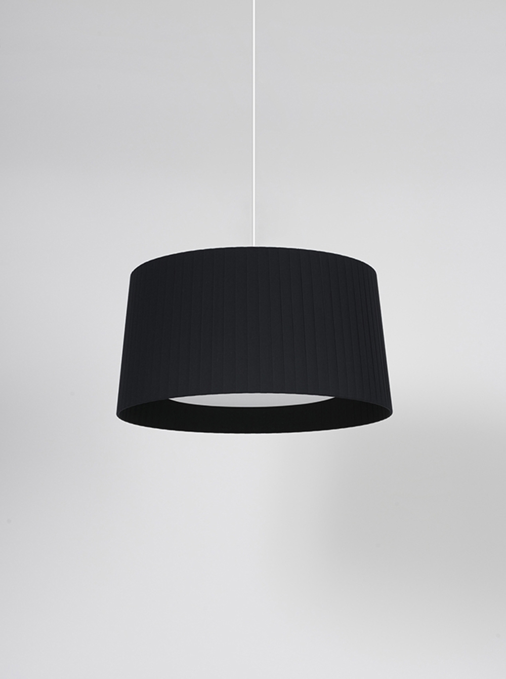 Santa & Cole GT5 pendel, sort skærm med hvid ledning & hvid baldakin.
