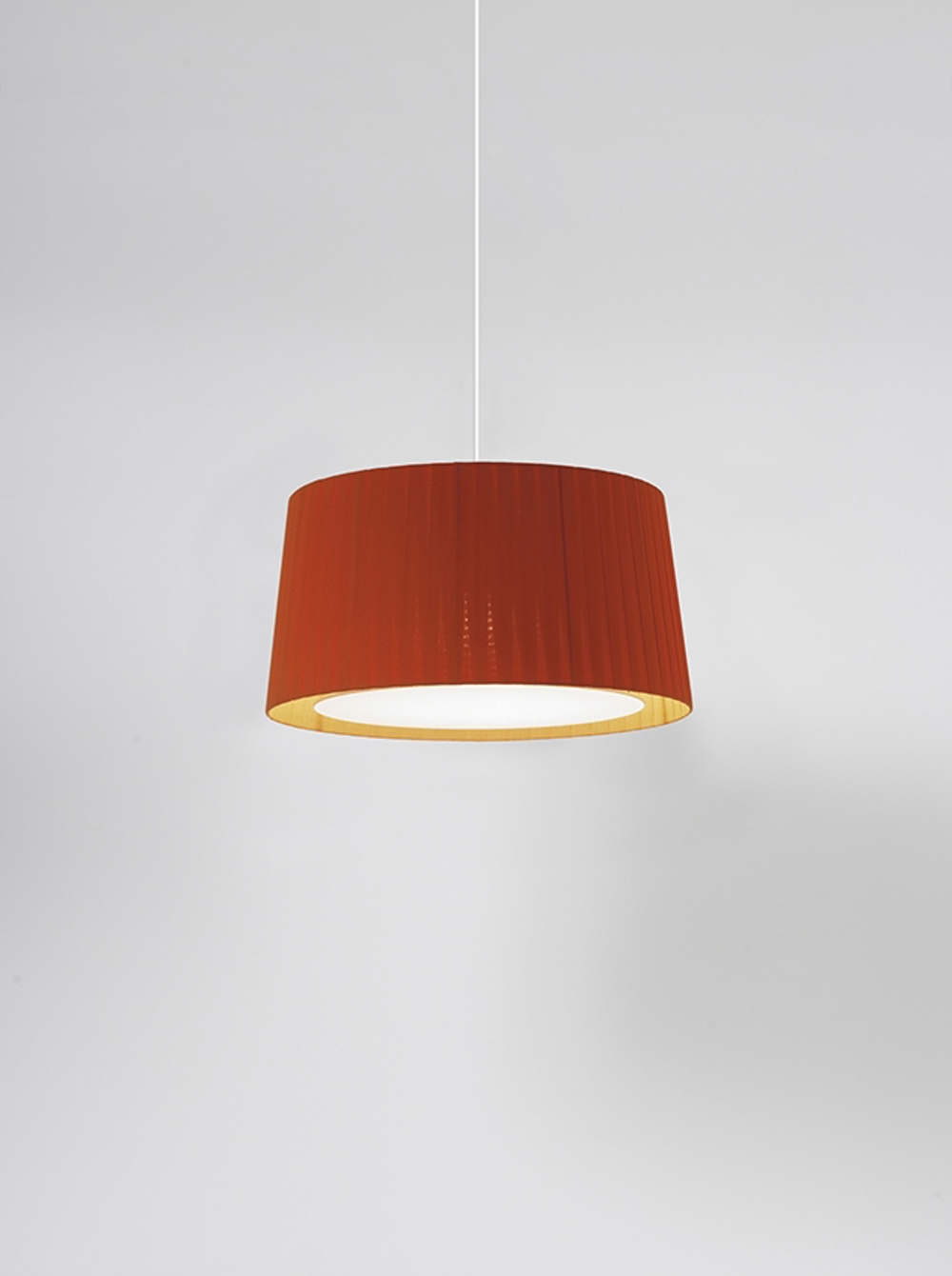 Santa & Cole GT6 pendel, rød skærm med hvid ledning & hvid baldakin.