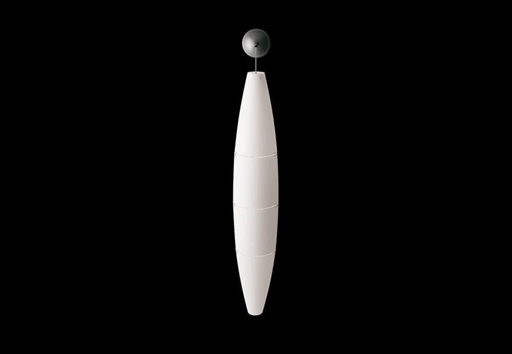 Moderne pendel/væglampe med skærm bestående af fire polycarbonatskærme med satin-finish. Skærmene hægtes sammen med små fine metalkroge.