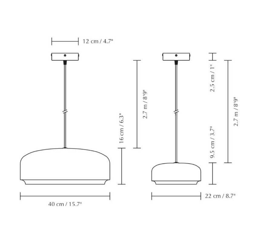 Hazel findes i størrelserne mini og medium i varianterne sort/messing eller hvid/messing.