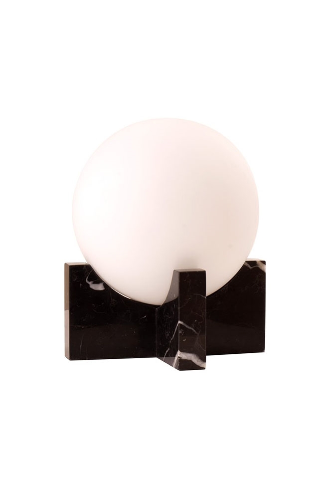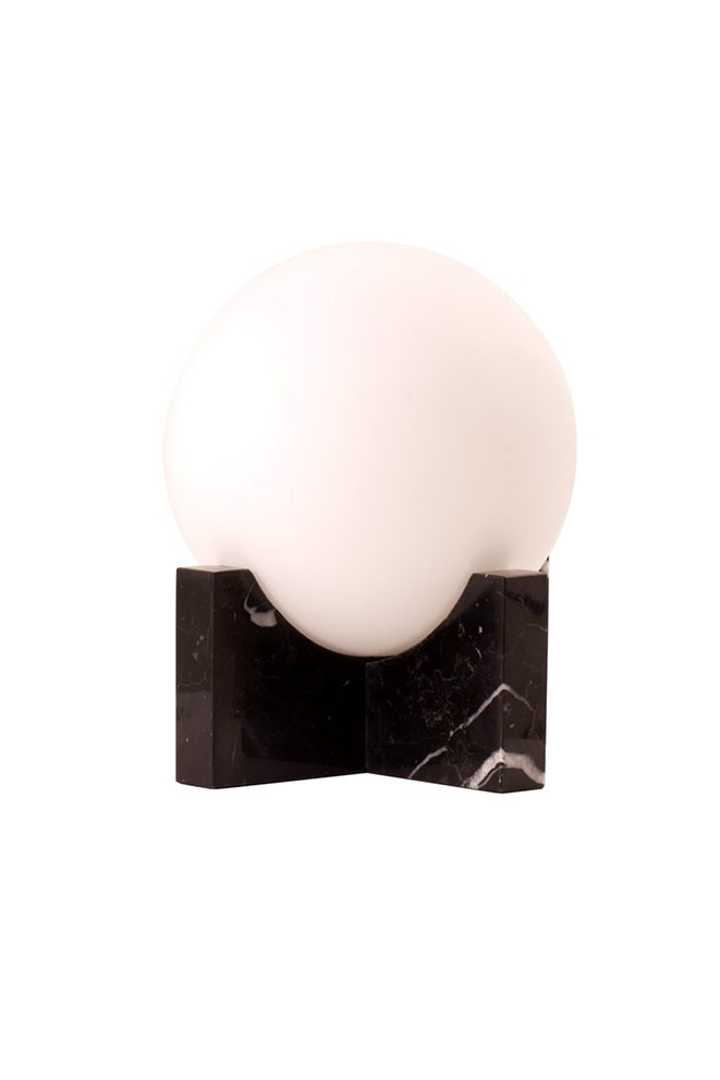 Frandsen Hito bordlampe/væglampe, sort marmor/hvidt opalglas - designet af Toni Rie