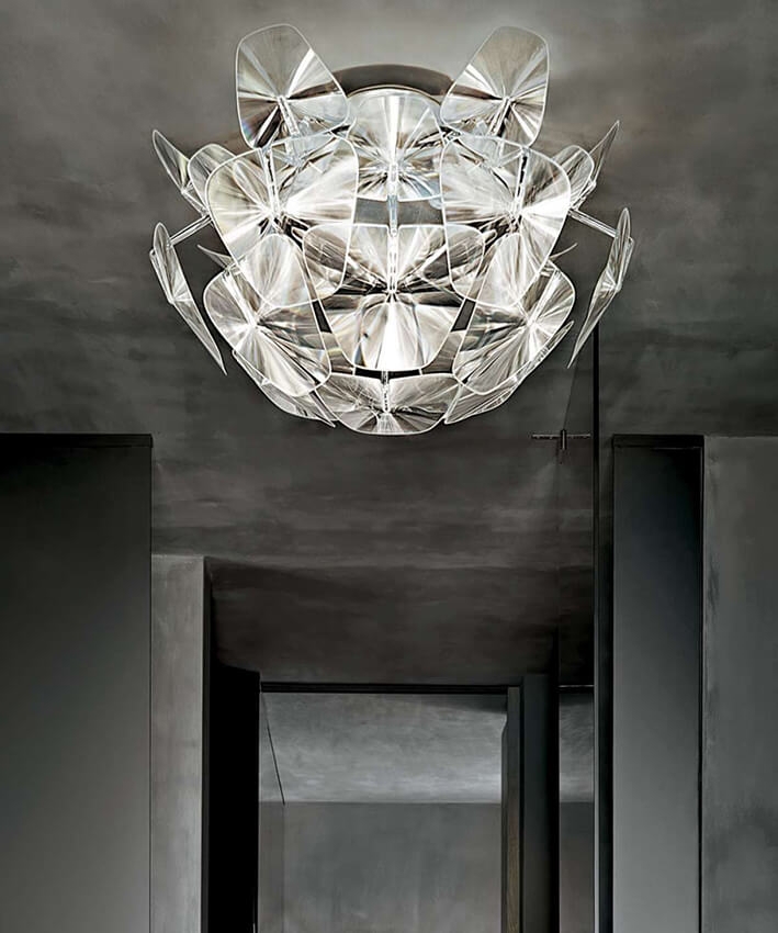 Hope er inspireret af de traditionalle prismelysekroner, som Luceplan har nyfortolket. Hope loftlampen består af materialer som polycarbonat, hvor skærmenes struktur er lavet af poleret rustfrit stål. Derudover har lampen prismatiske linser, der reflekterer lyset på en krystalagtig måde i rummet.