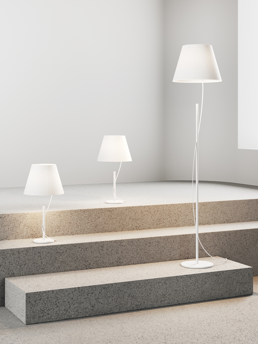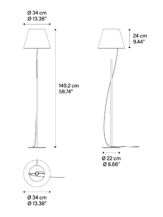 Hover findes både som bordlampe (højde: 51,2 cm) og gulvlampe (højde: 149,2 cm).
