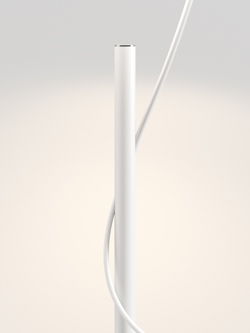 Hover gulvlampen er designet med en lampeskærm, der ser ud til at svæve over lampens krop - kun forbundet med et enkelt kabel, der løber gennem stilken og kommer ud af den anden ende. Det giver lampen en lethed i sit udtryk.