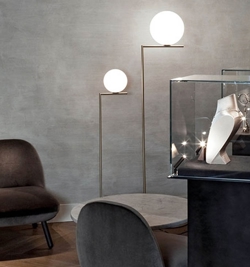 IC Light er en serie af lamper som består af væglamper, loftlamper, gulvlamper, bordlamper og pendler, hvor materialet er i mat messingfarve, krom, sort eller vinrød med hvidt opal glas.