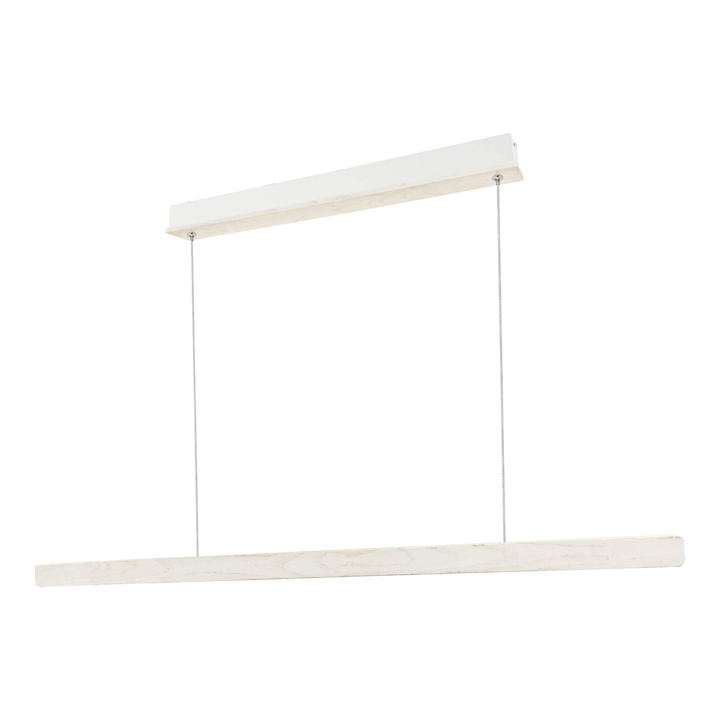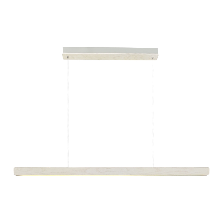 Træets naturlige variation betyder, at hver lampe har sit eget personlige udtryk og vil være et dekorativt element i indretningen. Højdejustering sker let ved at gemme en del af ledningen i baldakinen ved monteringen.