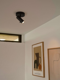 Loftlampen Jerome har et moderne og minimalistisk design med et lampehoved, der er vipbart 90° og drejeligt 320°. Benyt loftlampen i køkkenet, entréen eller som fokuseret belysning ved klædeskabet i soveværelset eller til at fremhæve særlige detaljer i stuen.