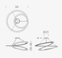 Kepler up pendel har opadgående lys. Kepler lampeserien findes i Kepler, Kepler Minor og Kepler petite: Findes i farverne hvid, guldfarvet og sort.