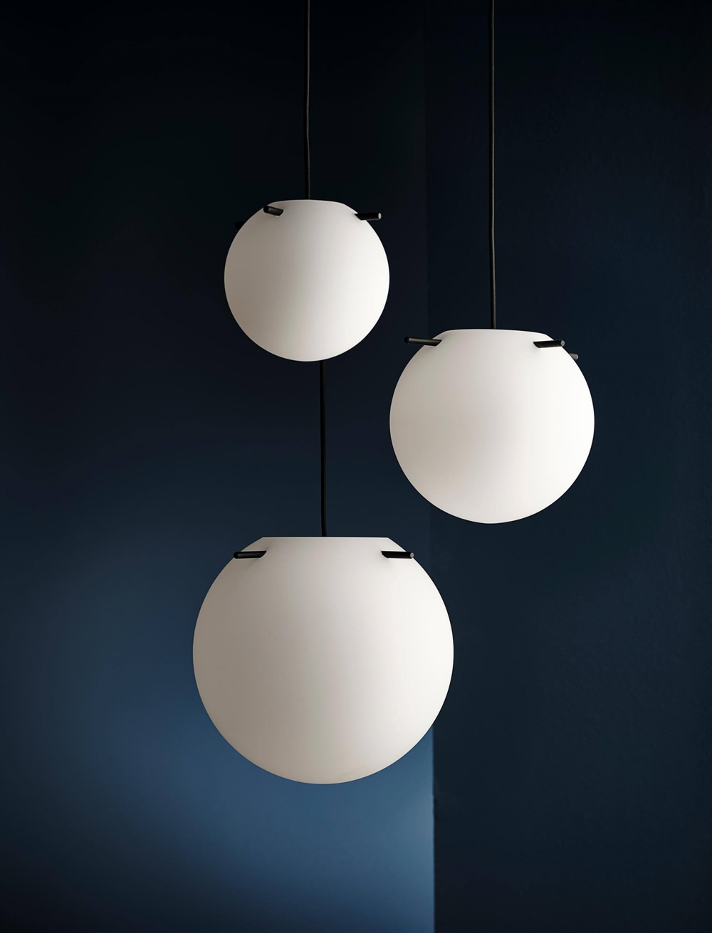 Frandsen Koi pendel Ø25, opal hvid med sorte sticks - designet af Jonas Birkebæk Poulsen