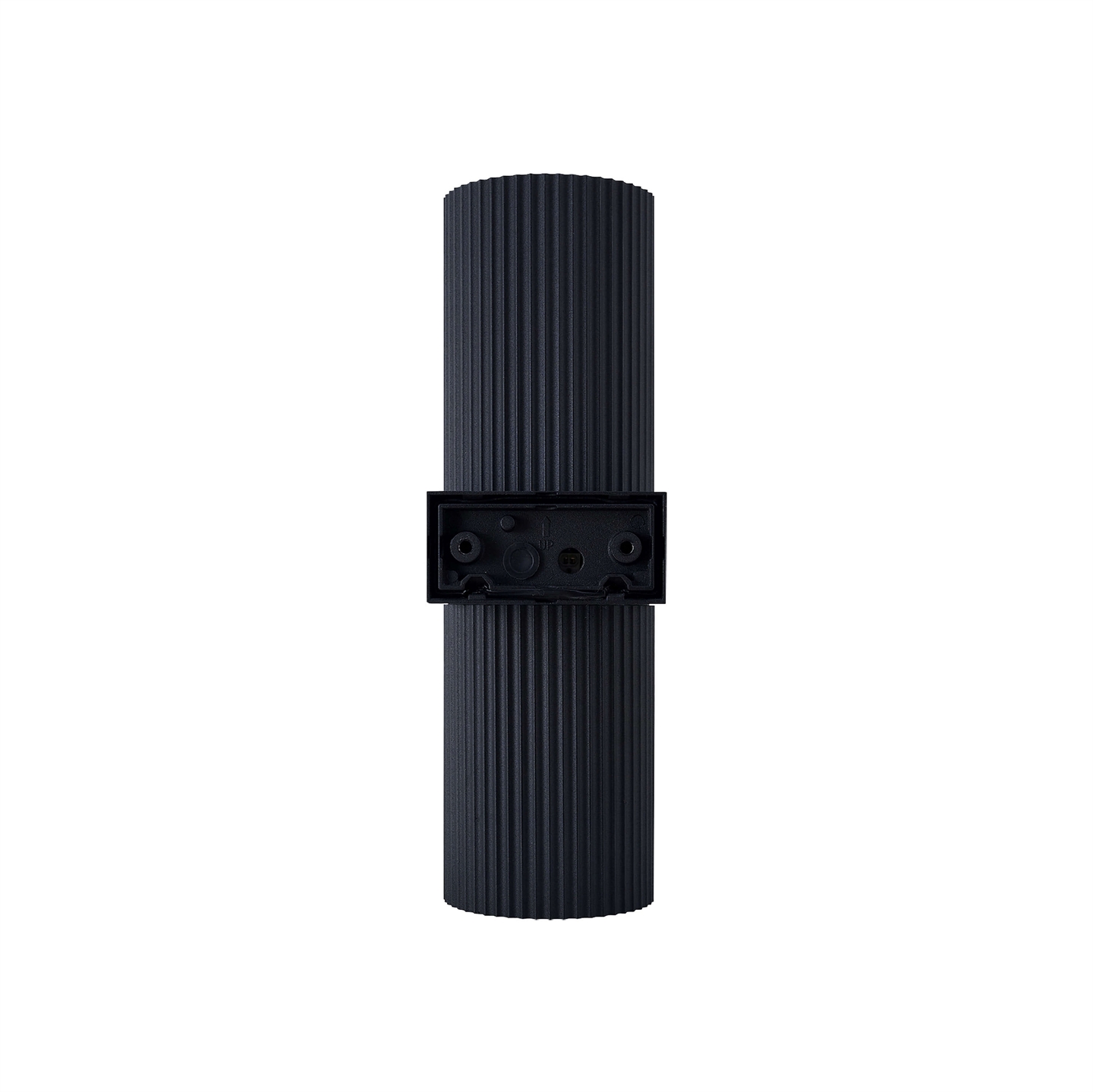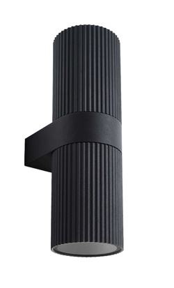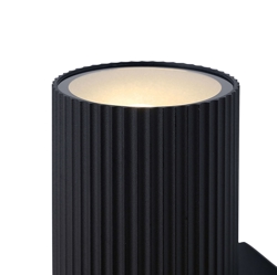 Den elegante Kyklop Ripple Maxi udendørs væglampe er dansk design med en smuk riflet overflade i sort aluminium. En stilfuld væglampe med et moderne udtryk, der vil passe godt til mange udemiljøer. Har et både opad- og nedadrettet lys, der skaber et flot lysspil på væggen.