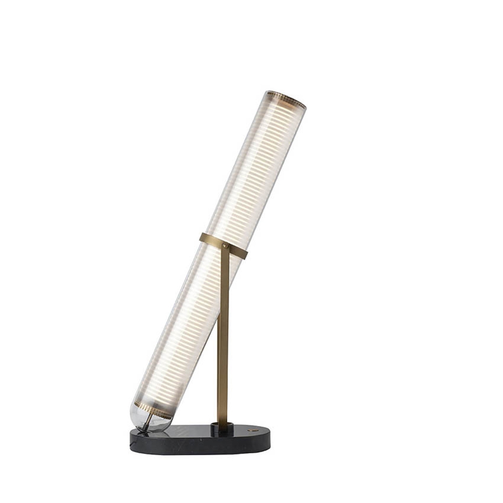La Lampe Frechin består af en sort marmor- og anodiseret aluminiumsbase og en cylinderformet skærm af borosilikatglas. Lampens design er utrolig elegant og tidsløst.
