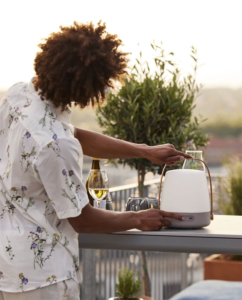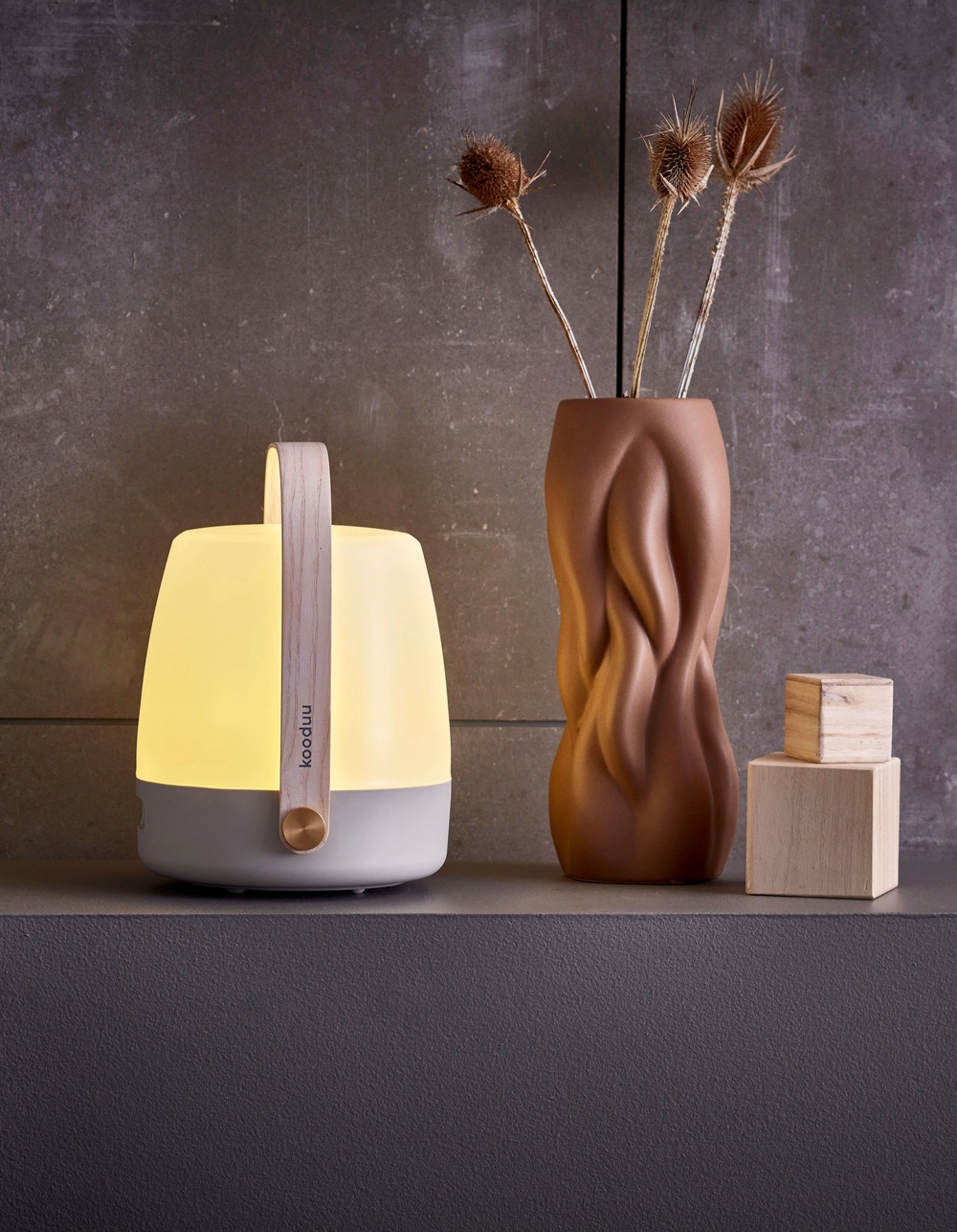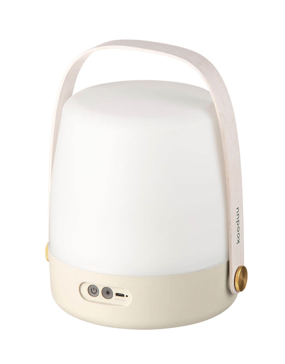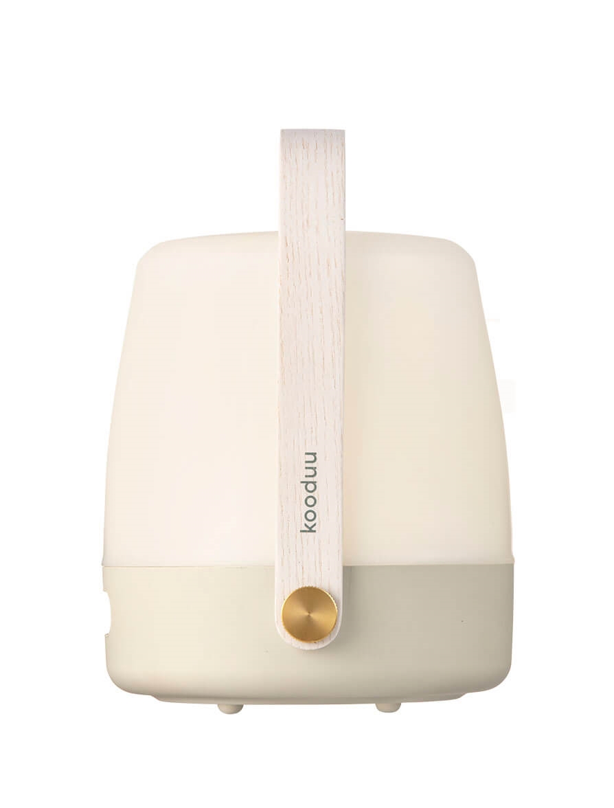 Kooduu lampen skaber blikfang i enhver indretning. Lite-up har krop af hvid PE med soft-touch. Håndtaget er af lyst træ.