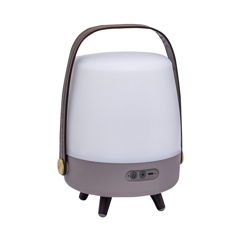 Den unikke højtalerlampe skaber blikfang i enhver indretning. Lite-up Play Mini har krop af hvid PE og et håndtag af træ. Også fødderne er i træ med gummiafslutninger. Højtalerlampen kan bruges både indendørs og udendørs, hvis den tages med ind efter brug.