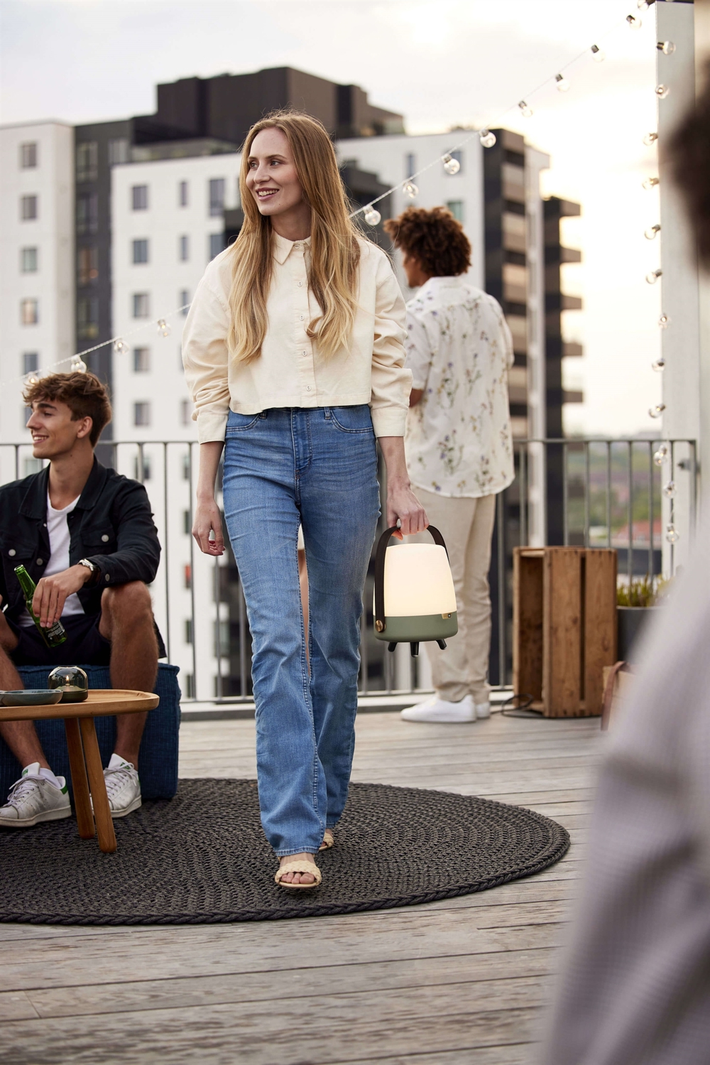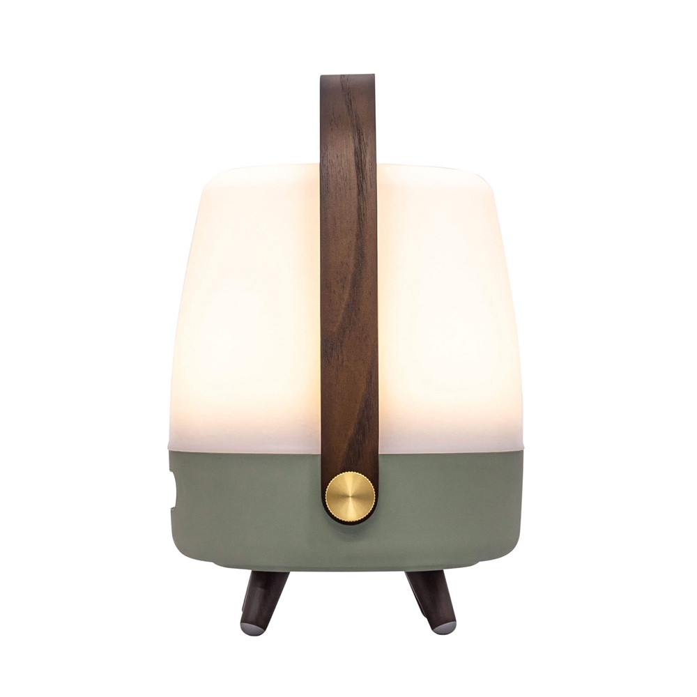 Den unikke højtalerlampe skaber blikfang i enhver indretning. Lite-up Play Mini har krop af hvid PE og et håndtag af træ. Også fødderne er i træ med gummiafslutninger. Højtalerlampen kan bruges både indendørs og udendørs, hvis den tages med ind efter brug.