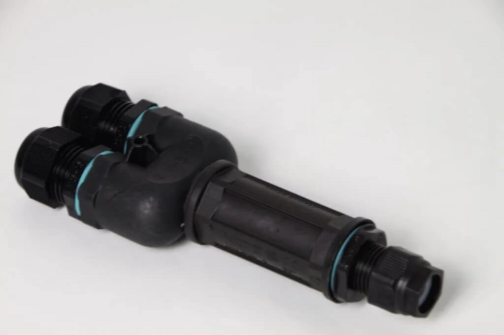 Ved montering af udendørslamper kan denne Loop-in - Loop-out connector anvende til at forbinde eksempelvis flere Matita Round pullerter med pålidelige forbindelser beskyttet mod vand og støv.