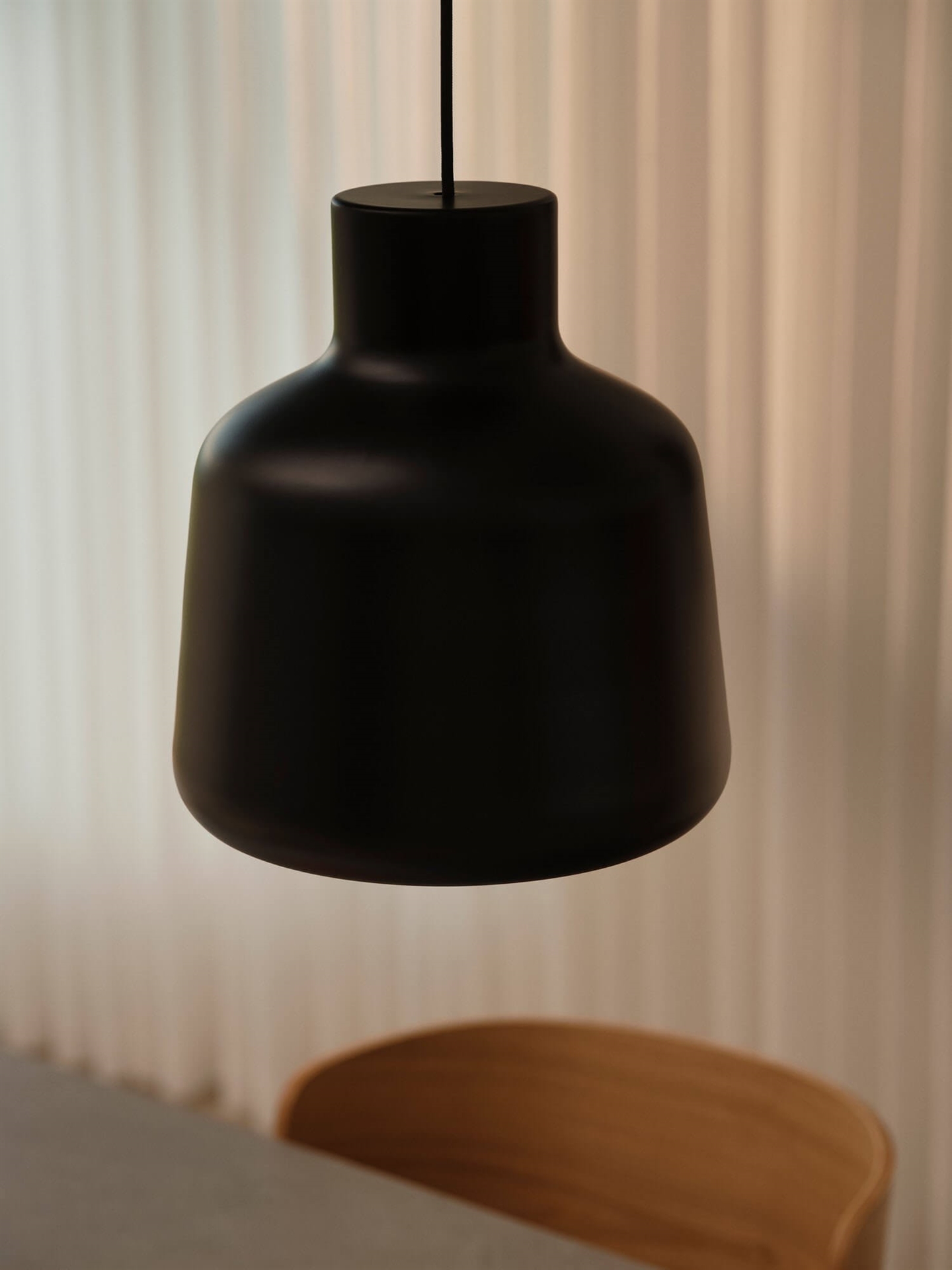 Lamperne i Louella-serien har et cool og markant design i sort metal med satinfinish. Pendlen fås i to størrelser med en moderne og elegant stil, der sikrer et funktionelt nedadrettet lys. Et godt valg som belysning over spisebordet eller som køkkenpendel.
