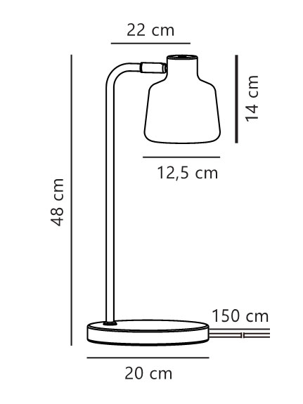 Mål: H48 x D22 cm, skærm: Ø12,5 x H14 cm, base: Ø12 cm