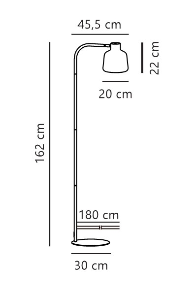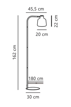 Mål: H162 x D45,5 cm, skærm: Ø20 x H22 cm, base: Ø30 cm
