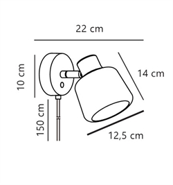 Mål: H16 x D22 cm, skærm: Ø12,5 x H14 cm, base: Ø10 cm